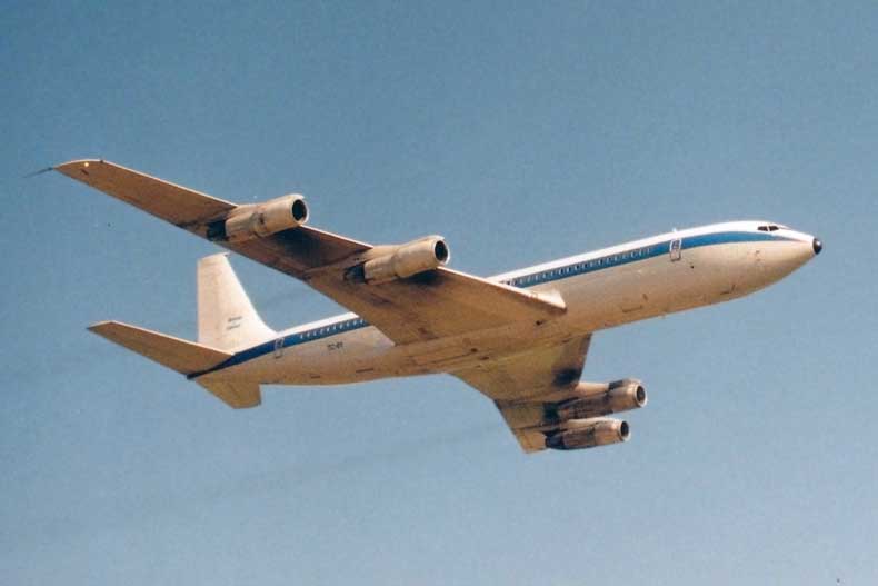 El Boeing 707 no es un avión muy apto para hacer fomento en la Patagonia. Hizo algunos vuelos a Calafate, pero LADE lo usó en innumerables servicios para terceros (foto: Pablo Luciano Potenze).